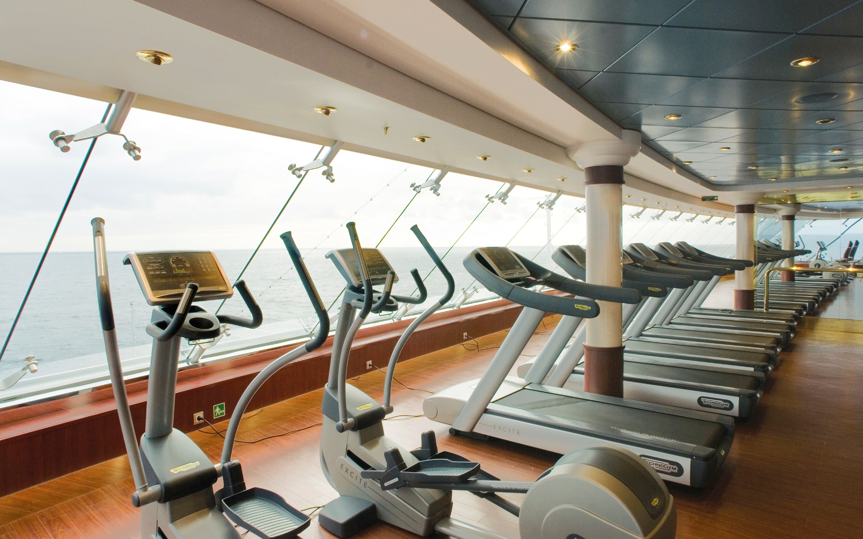 Panoramic gym equipped with the latest Technogym machines, 5 outstanding pools and the TOP 19 Exclusive solarium