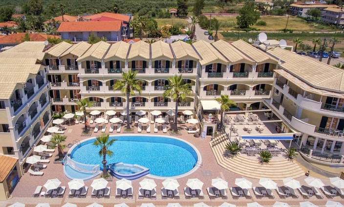 A relaxing holiday experience in the Zante sunshine awaits at the charming Alexander Hotel. This laid-back escape in the popular coastal village resort of Laganas is a short stroll away from a private sandy beach. You’ll stay in tastefully-designed accommodation with a host of superb facilities and enjoy delicious local cuisine in the hotel’s buffet restaurant. There’s an excellent swimming pool and terrace for catching some rays and you’ll enjoy live music and entertainment in the evenings. A kids pool and playground will keep the little ones busy. Other amenities which add to the appeal of the Alexander Hotel include a sumptuous spa, minimarket and sky bar.