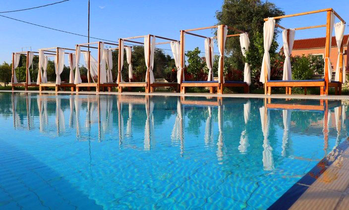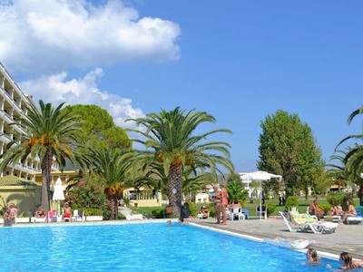 This was my first time in Greece, and Corfu is a wonderful island. The hotel is not to modern feeling, still keeping the rustic feeling without sacrificing amenities. It can be a long walk to and from the restaurant where breakfast, lunch, and dinner is served, but if you only want something to drink, all apartment complexes has a bar with coffe, wine, beer, cocktails, and soft drinks to chose from. Across the sea, you have a wonderful view of the mountainous coast of Albania, and the hotel offers multiple pools of varying depth for toddler and adults alike.