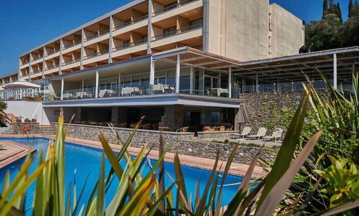 Set on a picturesque hillside looking out over the Ionian Sea, the Corfu Residence provides a stunning location for a blissful Greek island escape. Perfect for anyone seeking sun-drenched relaxation, this idyllic holiday haven boasts a swimming pool, jacuzzi and an outdoor gym. Greek and Italian dishes are on the menu at the hotel’s restaurants, while the charming accommodation provides guests with a serene space to unwind after a delightful day on the shores of Corfu.