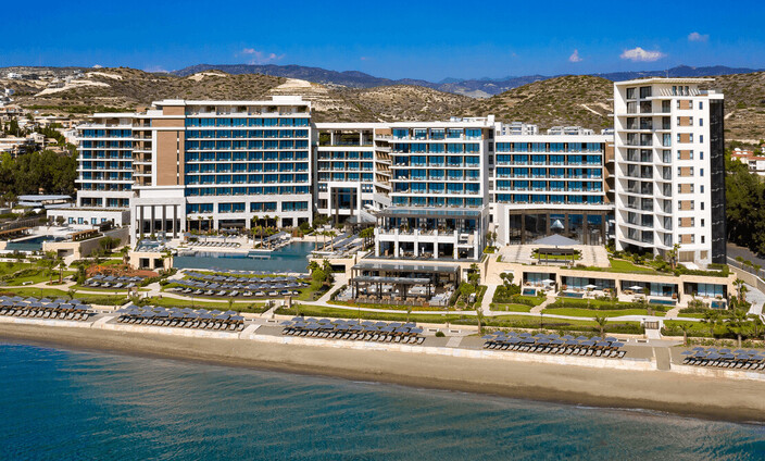 The Elysium Hotel is a top-tier, five-star luxury resort in Paphos, known for its stunning Byzantine-inspired architecture and elegant, palatial feel. Its location is excellent, right on the coast next to the Tombs of the Kings.