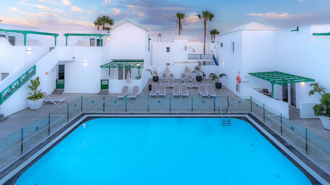 A friendly, relaxed atmosphere makes the Guacimeta Apartments, in Lanzarote, the ideal place for a family holiday. Guests can soak up the sun by the pool, or walk the short distance to relax on the beach. Those looking to get out and about could visit the nearby theme park and zoo, which is sure to be a hit with little ones. The apartments are also ideally located for a spot of golf, with the local course just a short drive away. After a day basking in the sunshine or out exploring, guests can unwind in the comfort of the modern accommodation at the Guacimata Apartments. Meals are also catered for on the complex, with the restaurant serving breakfast, lunch and dinner. The Guacimeta’s all-inclusive offering allows guests to fully relax during their break, knowing that all their food and drink is catered for, and all they have to worry about is enjoying their sun-soaked Lanzarote holiday.