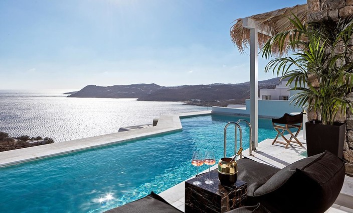 Indulge yourself with the holiday of lifetime at the Petinos Beach Hotel, an exclusive 5-star retreat in the magnificent island of Mykonos. Nestled next to the beach at Platis Gialos and within easy reach of Mykonos Town, this imposing getaway oozes style, sophistication and charm. The resort overlooks a tranquil bay where you’ll discover a myriad of tavernas, seafood restaurants and plenty of water sports action on the crystal-clear Aegean Sea. This fabulous haven of relaxation boasts opulent rooms and suites which are exquisitely-furnished and two top-quality dining venues offering local and international delicacies to satisfy the most discerning palate. You’ll also discover a superb swimming pool, fitness centre, a sun terrace and a mini market.