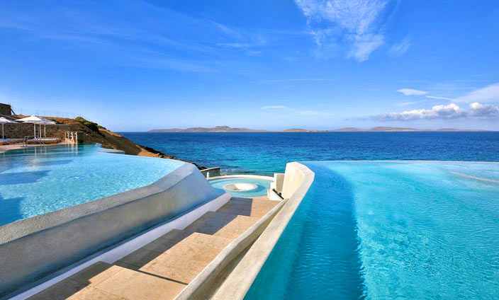 I was staying at the hotel with my family and we had the best time. I think this was my favorite hotel experience ever. The staff is young and friendly. The rooms were tastefully decorated and clean. The food was very tasty both at breakfast and dinner even though we keep kosher and don't have a huge selection. The pool is beautiful, and the private dock going into the ocean is amazing and you feel like you're in the middle of the ocean watching all of mykonos. I would absolutely come back here!