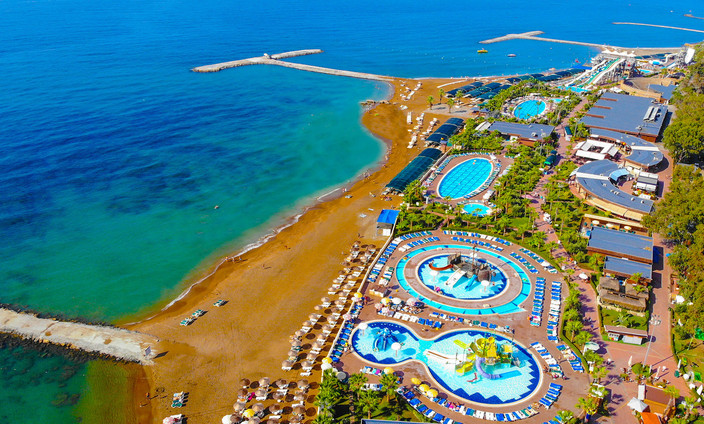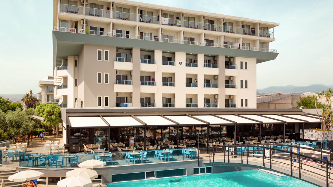 Viking Garden Hotel & Spa is a luxurious hotel located in the heart of Kemer, Antalya, in Turkey. The hotel aims to provide guests with an unforgettable experience by offering top-notch facilities and services. The hotel boasts a large main pool for those seeking excitement and fun, along with a water slide pool. For a more peaceful and serene atmosphere, guests can relax in the garden pool. The hotel also offers a children's pool for the little ones to enjoy. Furthermore, there is a private sandy beach where guests can unwind and fully experience a memorable Viking holiday.